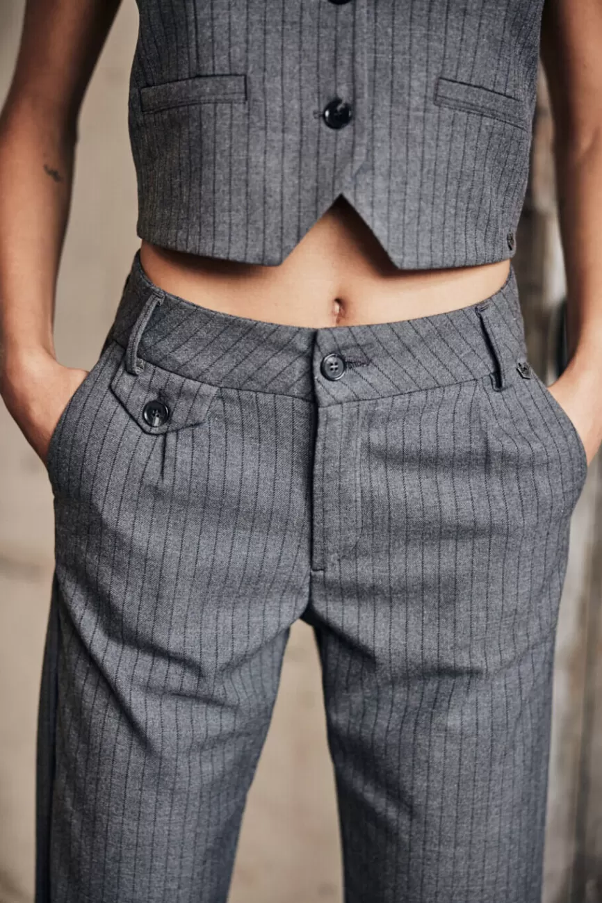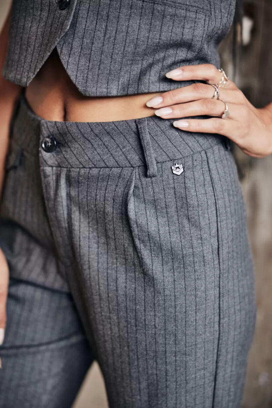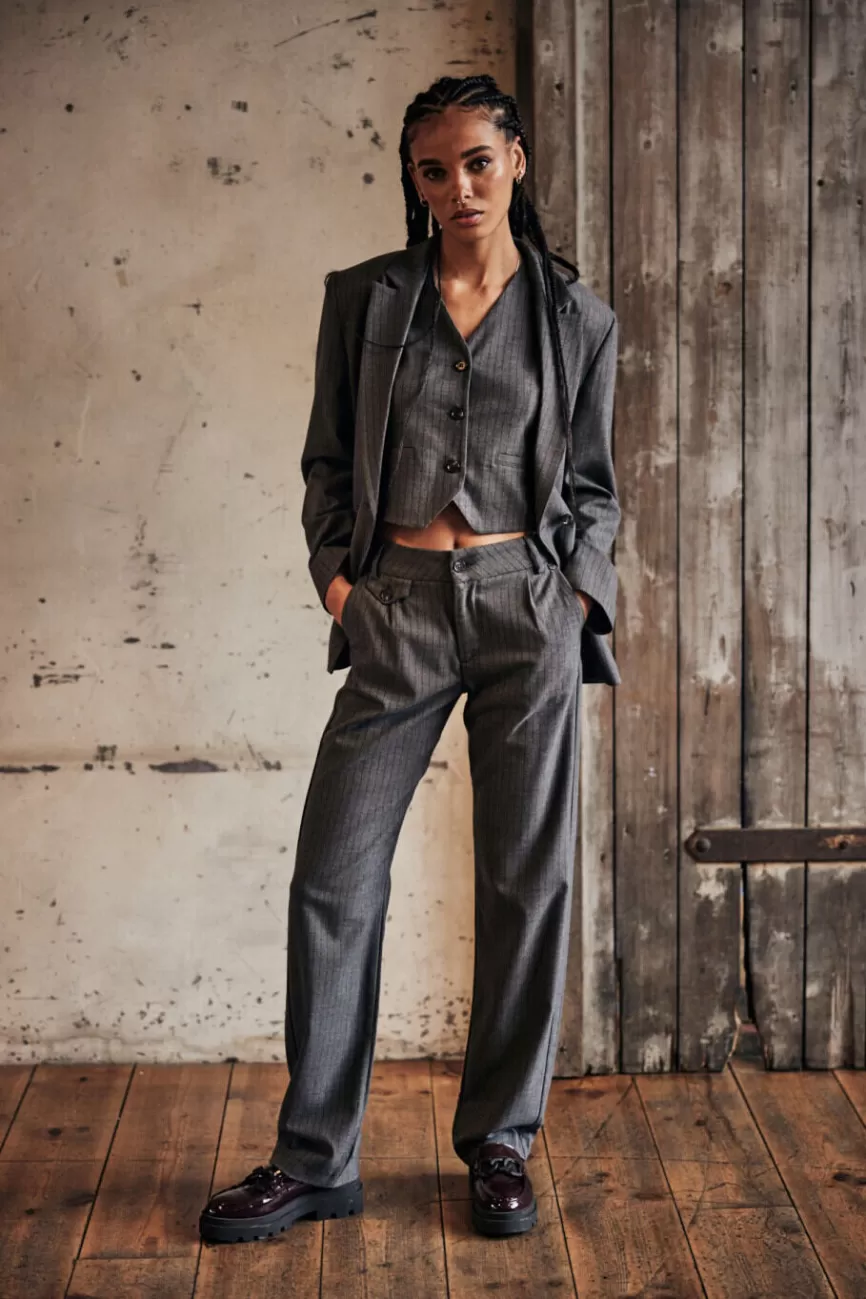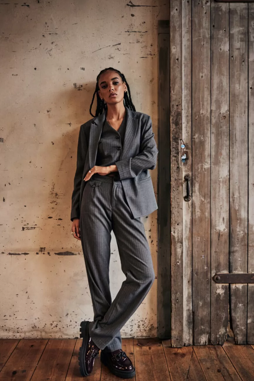 Matière grise légèrement stretch, toucher doux, à fines rayures