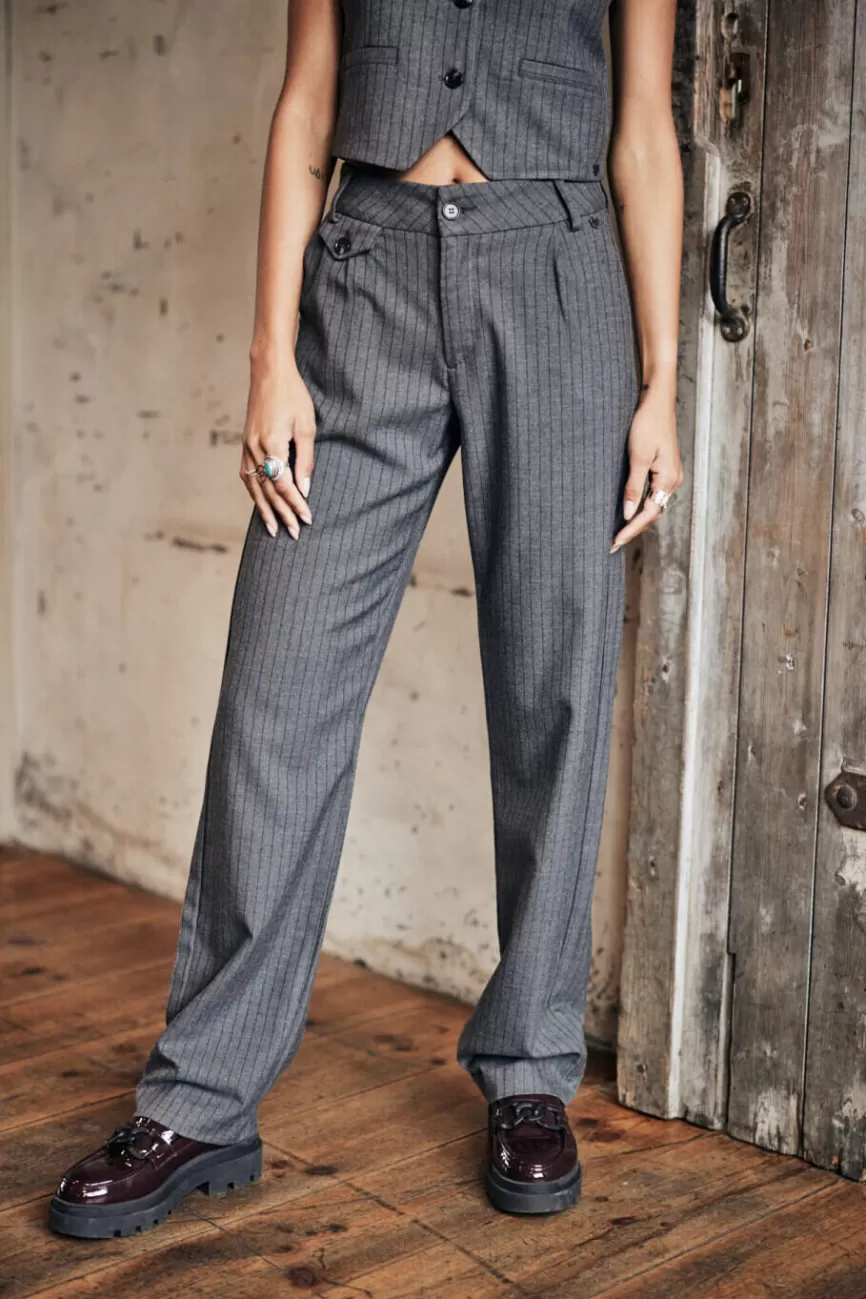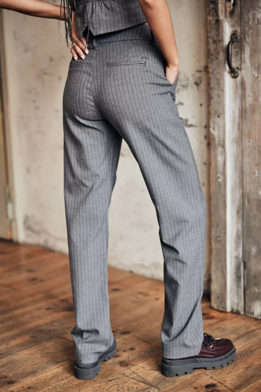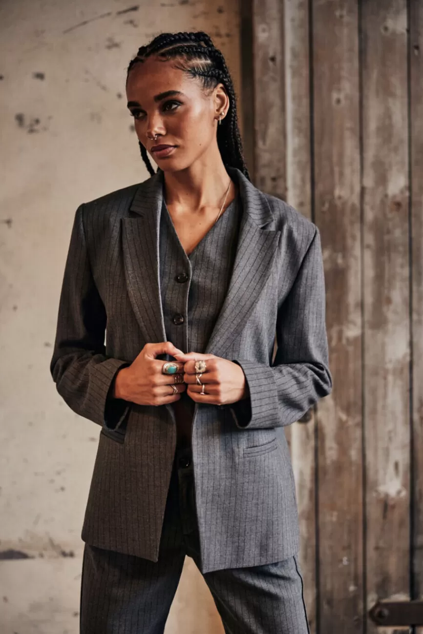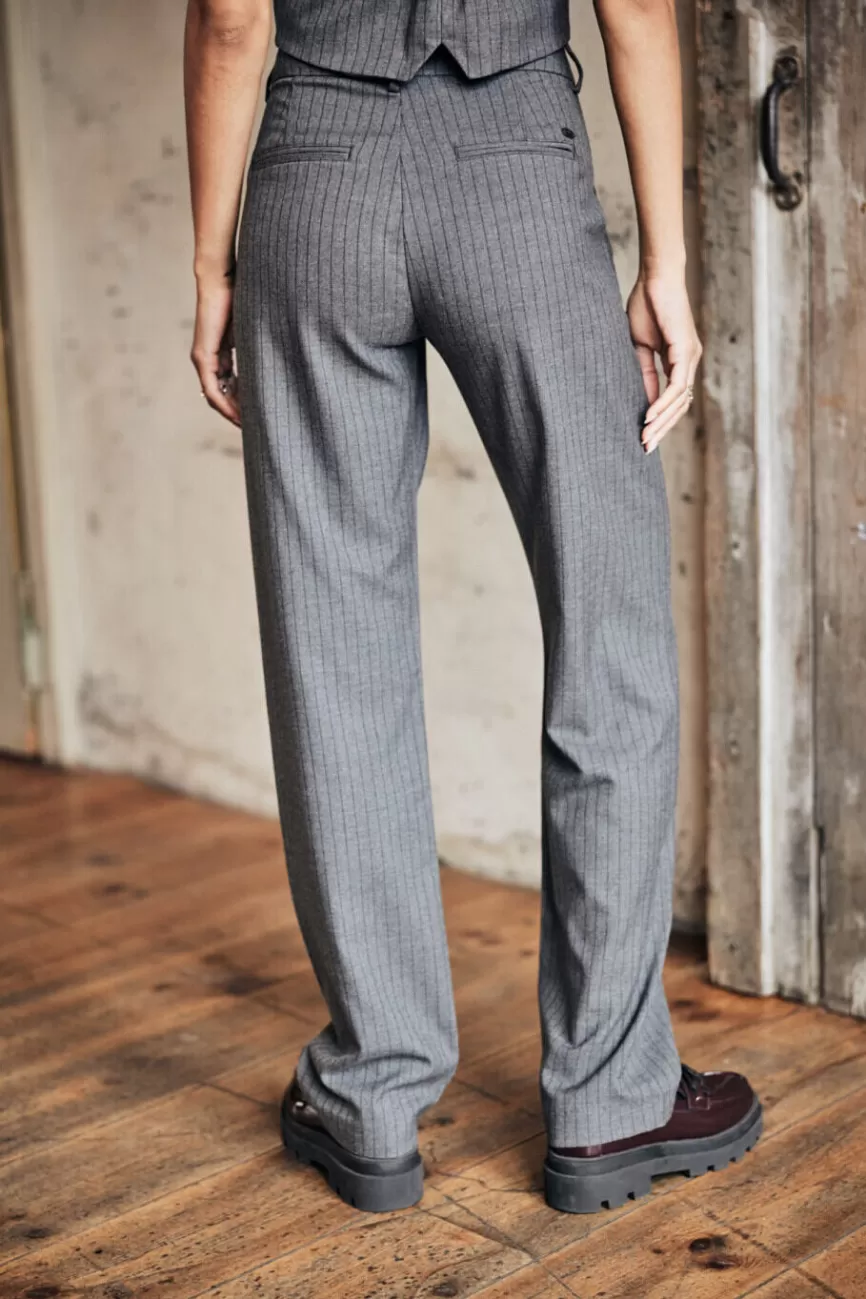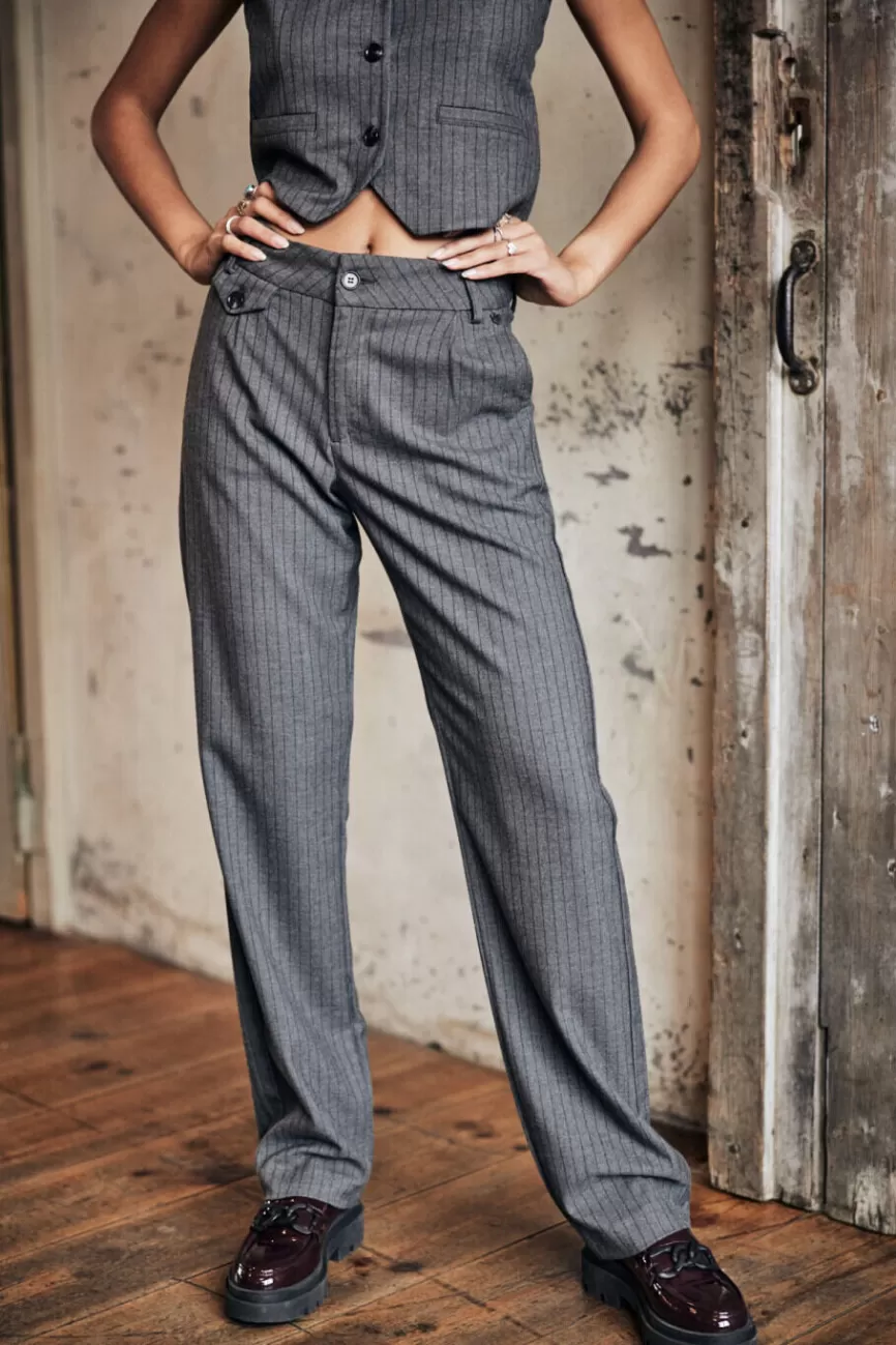 Matière grise légèrement stretch, toucher doux, à fines rayures